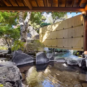 | 石和びゅーほてる | 開放感のある館内には鯉が泳ぐ池、昼間と夜とで雰囲気が異なる浮き舞台があり、露天風呂がおすすめ |